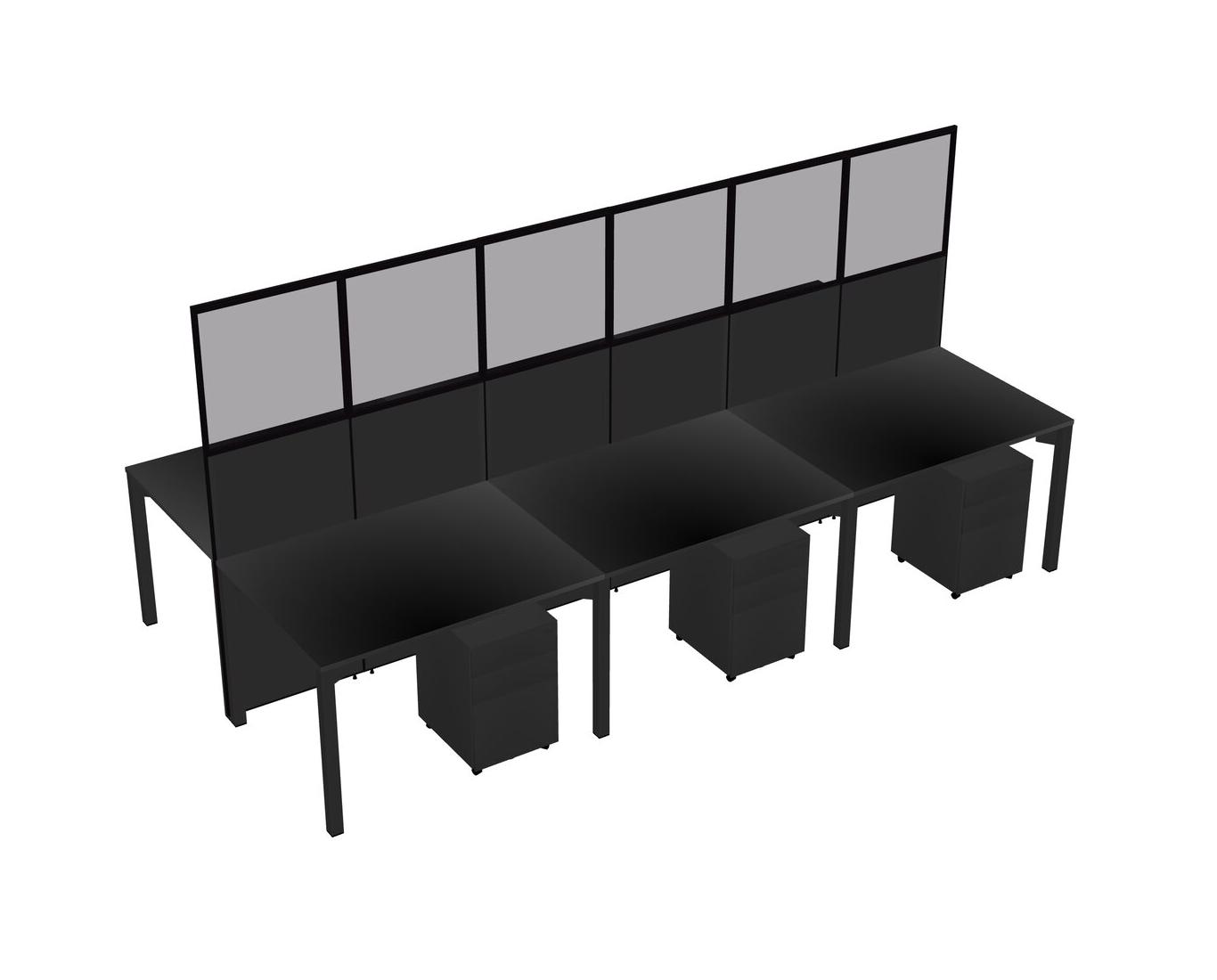 Black Shared Rectangular Office Cubicle Panel System With Mobile Drawers For 6 Persons