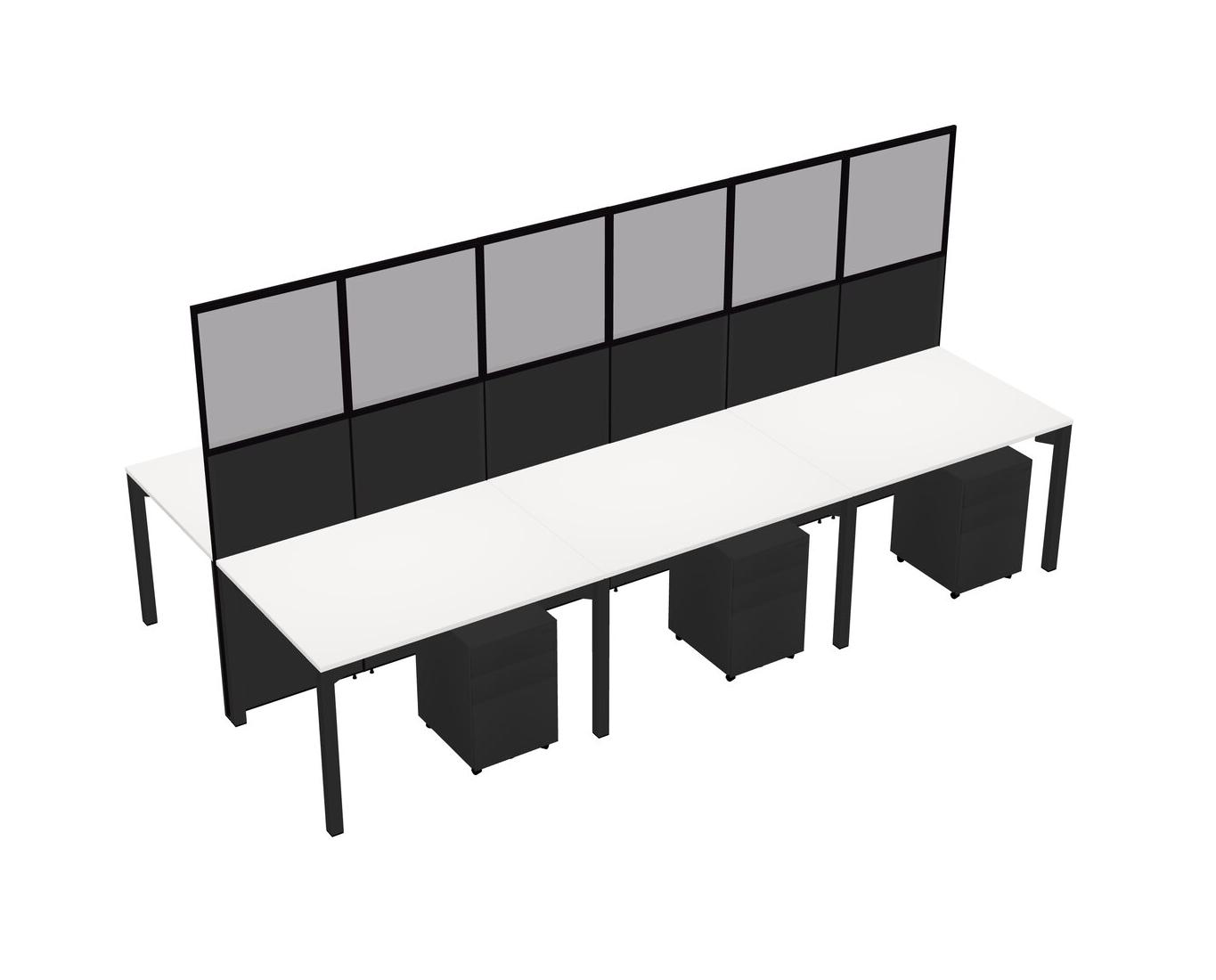 White Shared Rectangular Office Cubicle Panel System With Mobile Drawers For 6 Persons