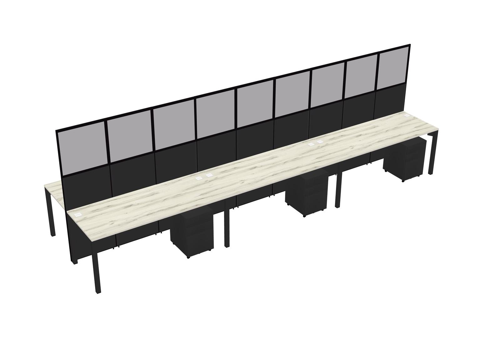 Heinne Holz Shared Rectangular Office Cubicle Panel System With Mobile Drawers For 6 Persons