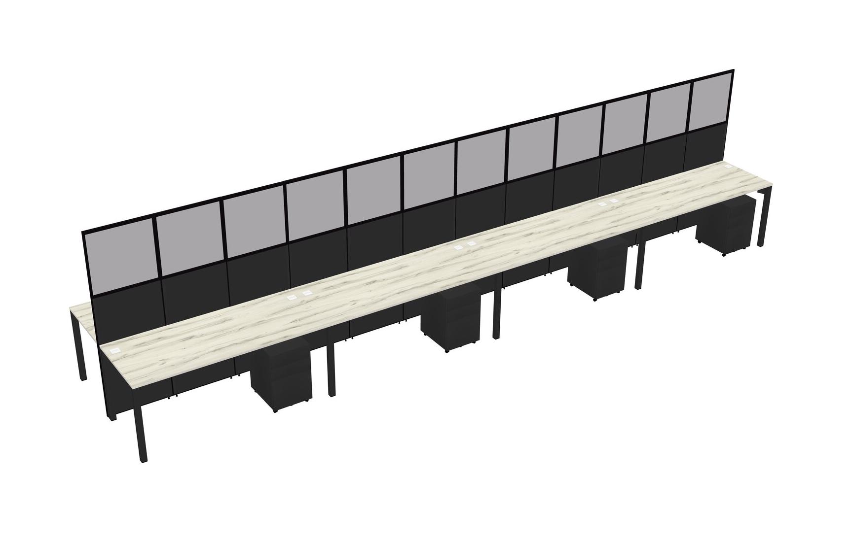 Heinne Holz Shared Rectangular Office Cubicle Panel System With Mobile Drawers For 8 Persons