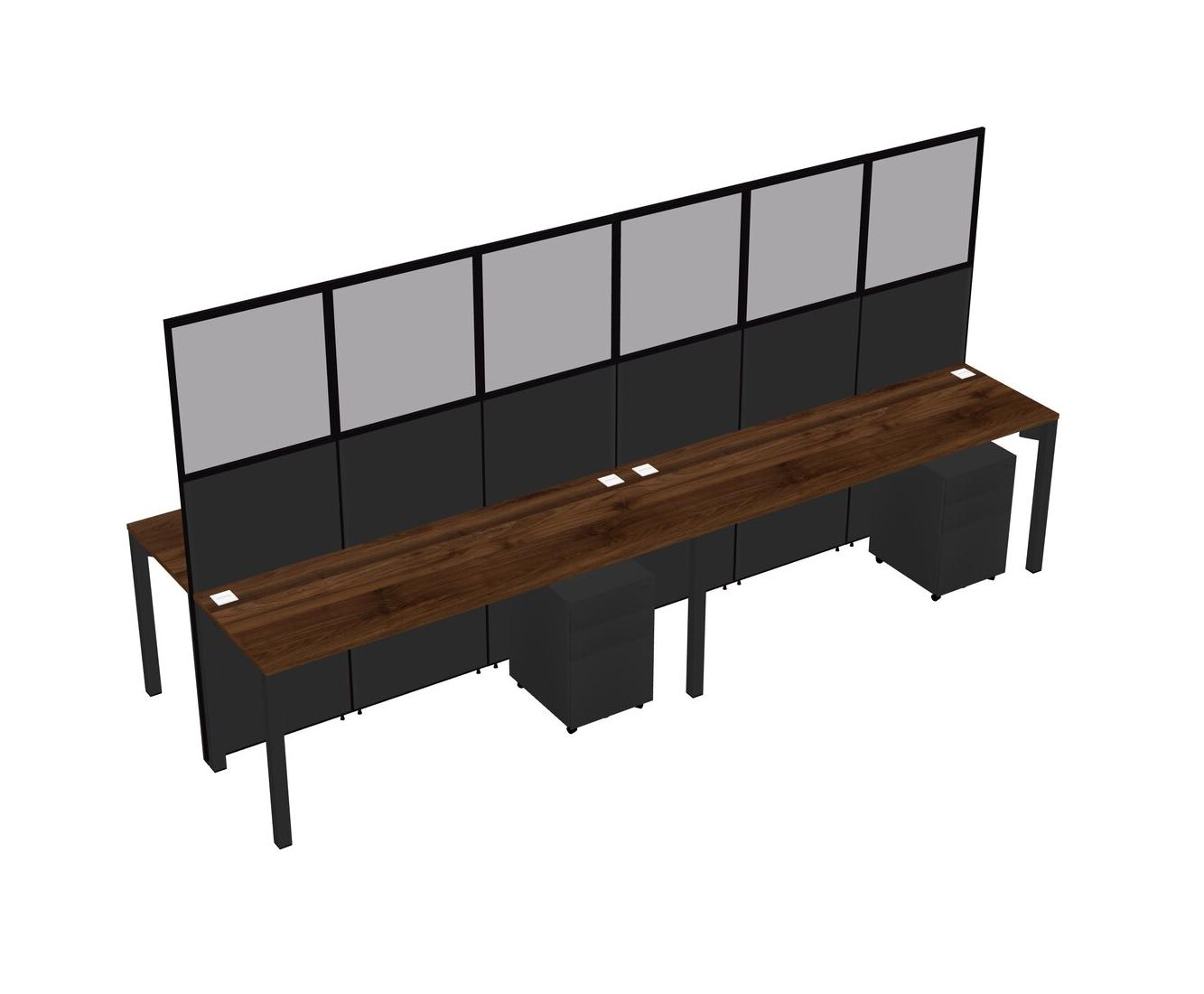 Columbia Walnut Shared Rectangular Office Cubicle Panel System With Mobile Drawers For 4 Persons