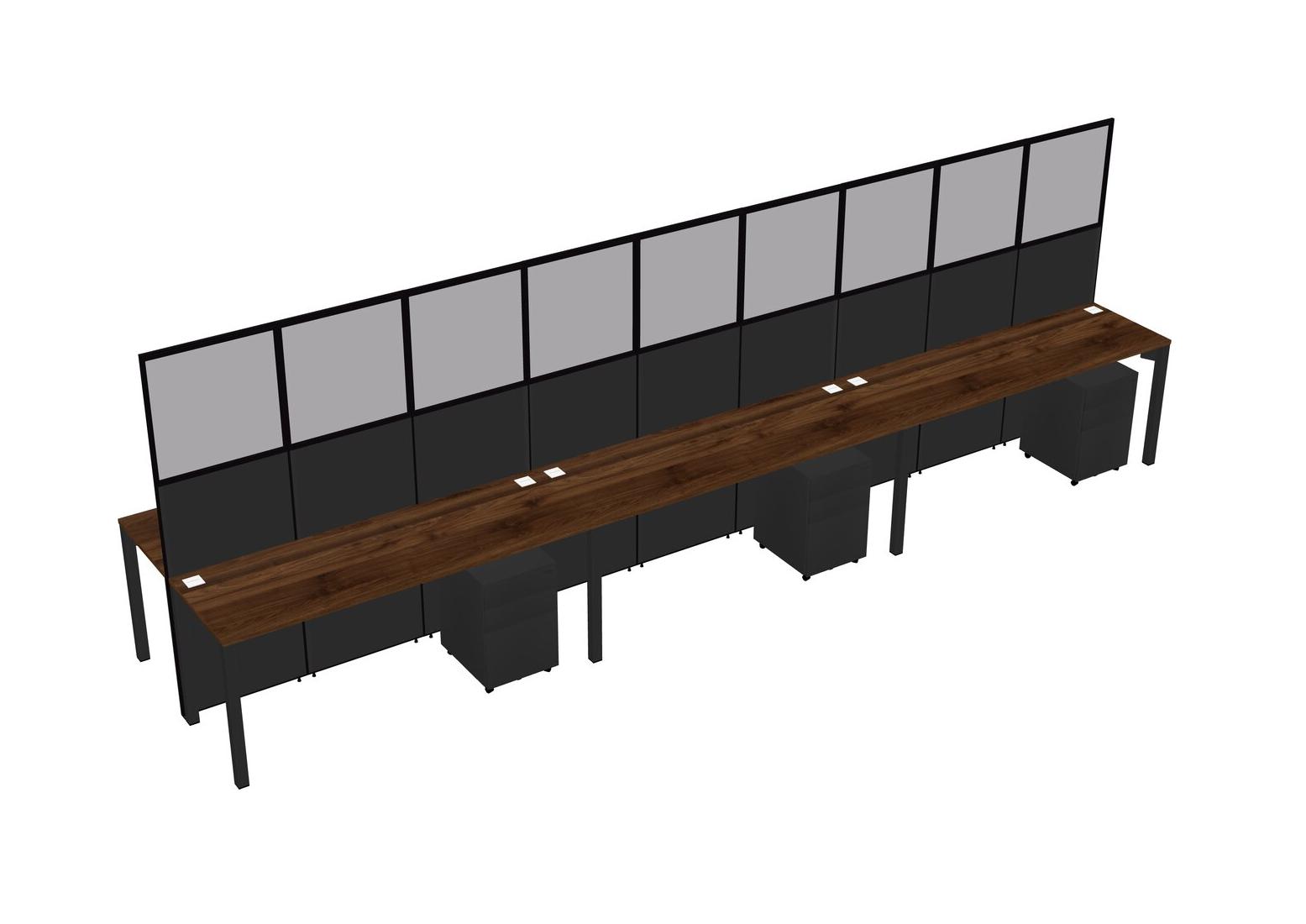 Columbia Walnut Shared Rectangular Office Cubicle Panel System With Mobile Drawers For 6 Persons