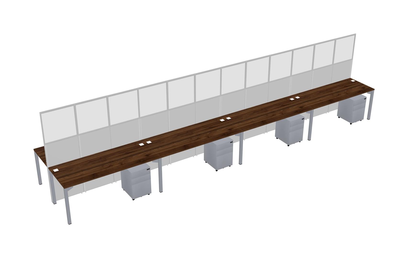 Columbia Walnut Shared Rectangular Office Cubicle Panel System With Mobile Drawers For 8 Persons