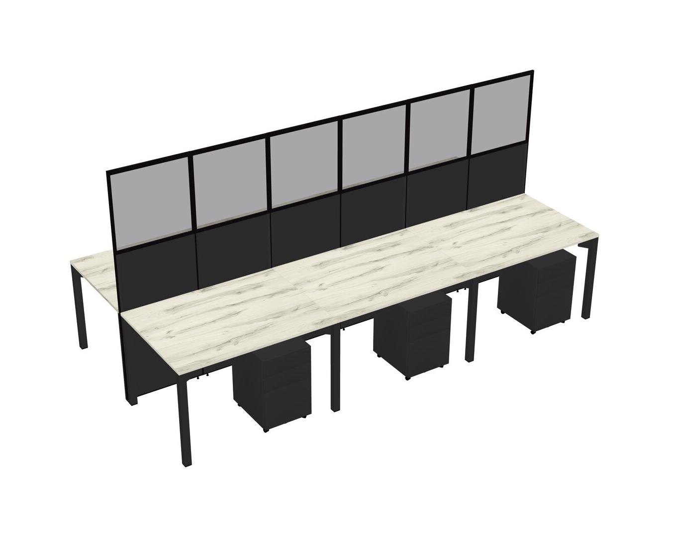 Heinne Holz Shared Rectangular Office Cubicle Panel System With Mobile Drawers For 6 Persons