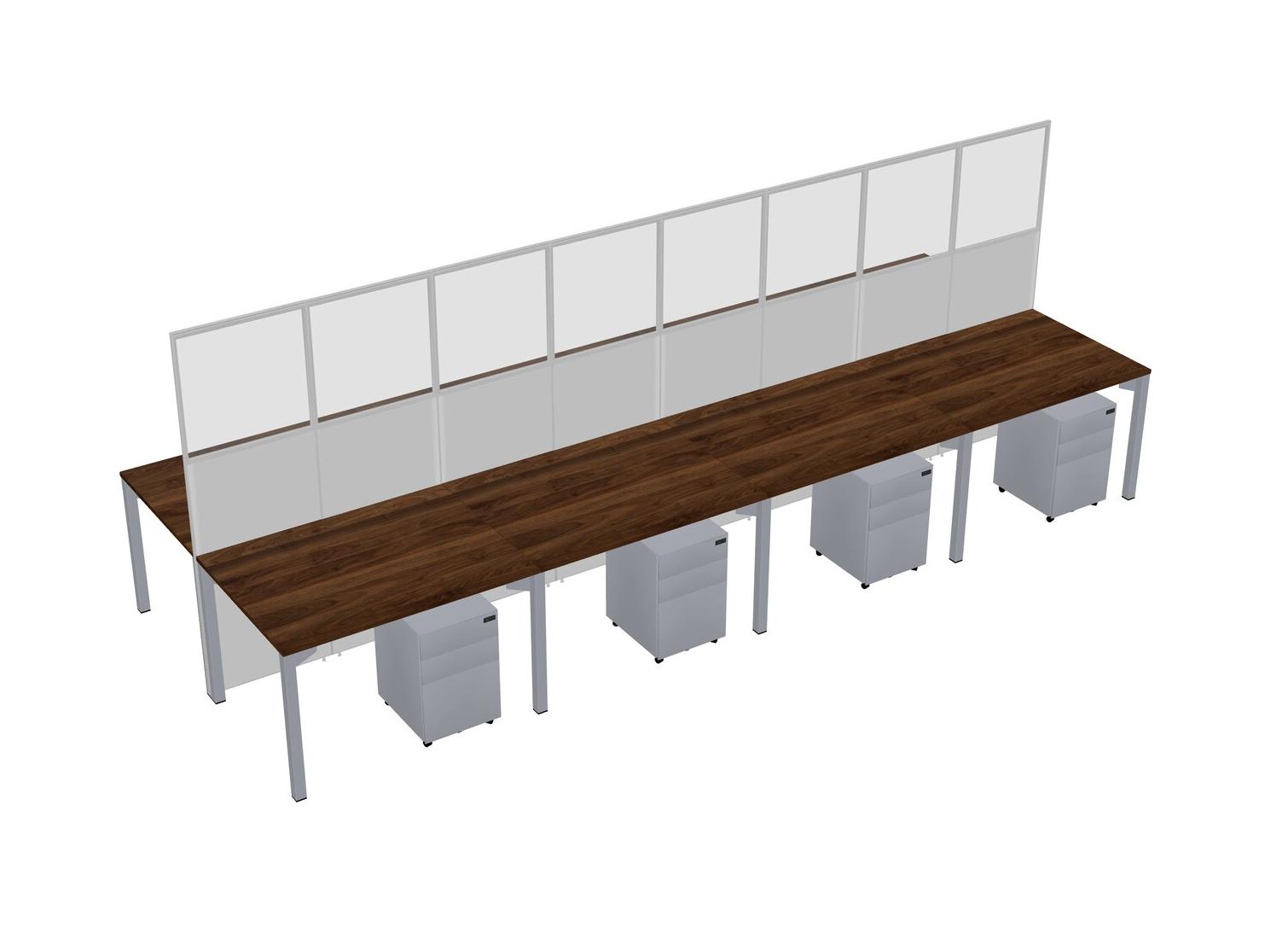 Columbia Walnut Shared Rectangular Office Cubicle Panel System With Mobile Drawers For 8 Persons