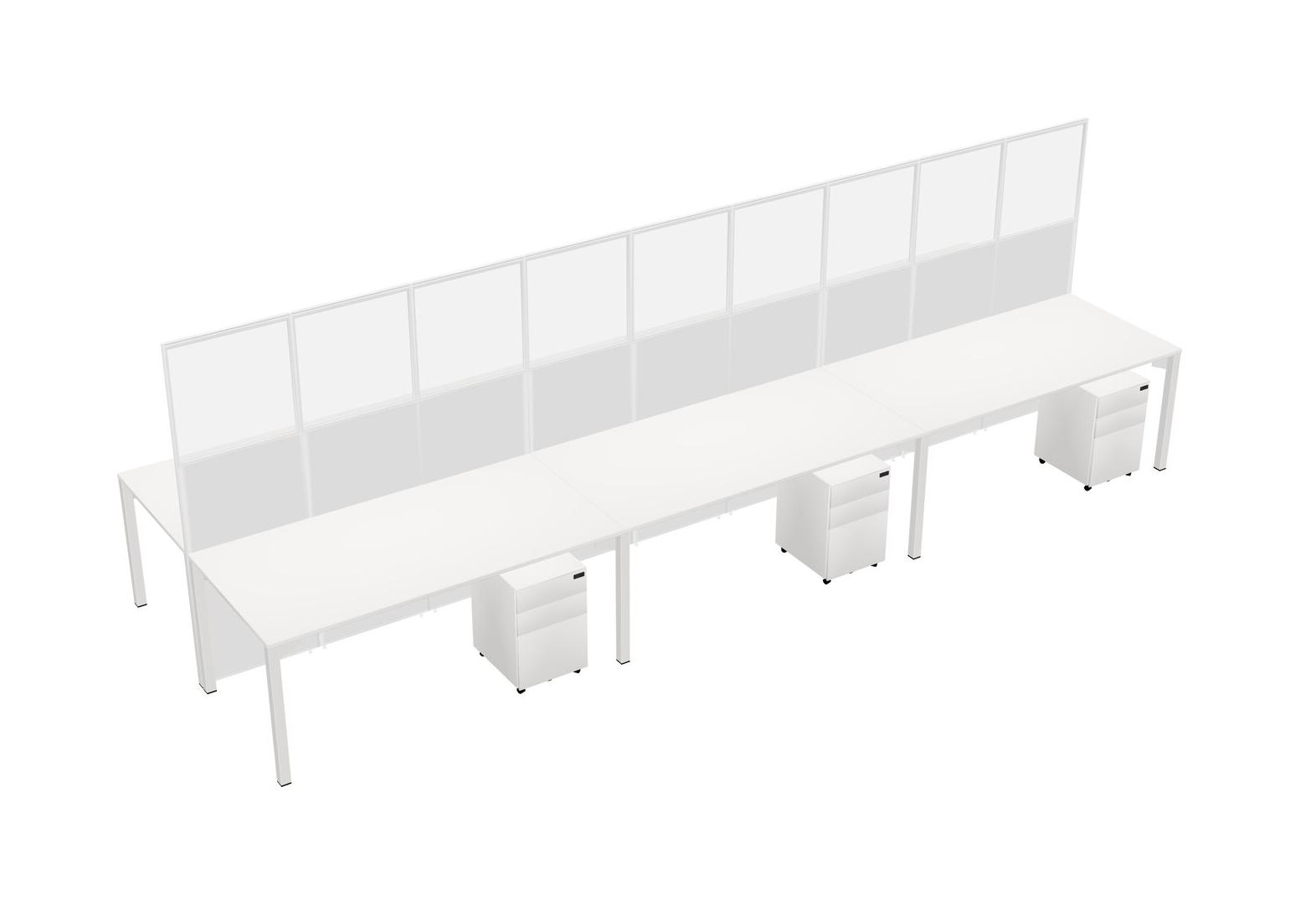 White Shared Rectangular Office Cubicle Panel System With Mobile Drawers For 6 Persons