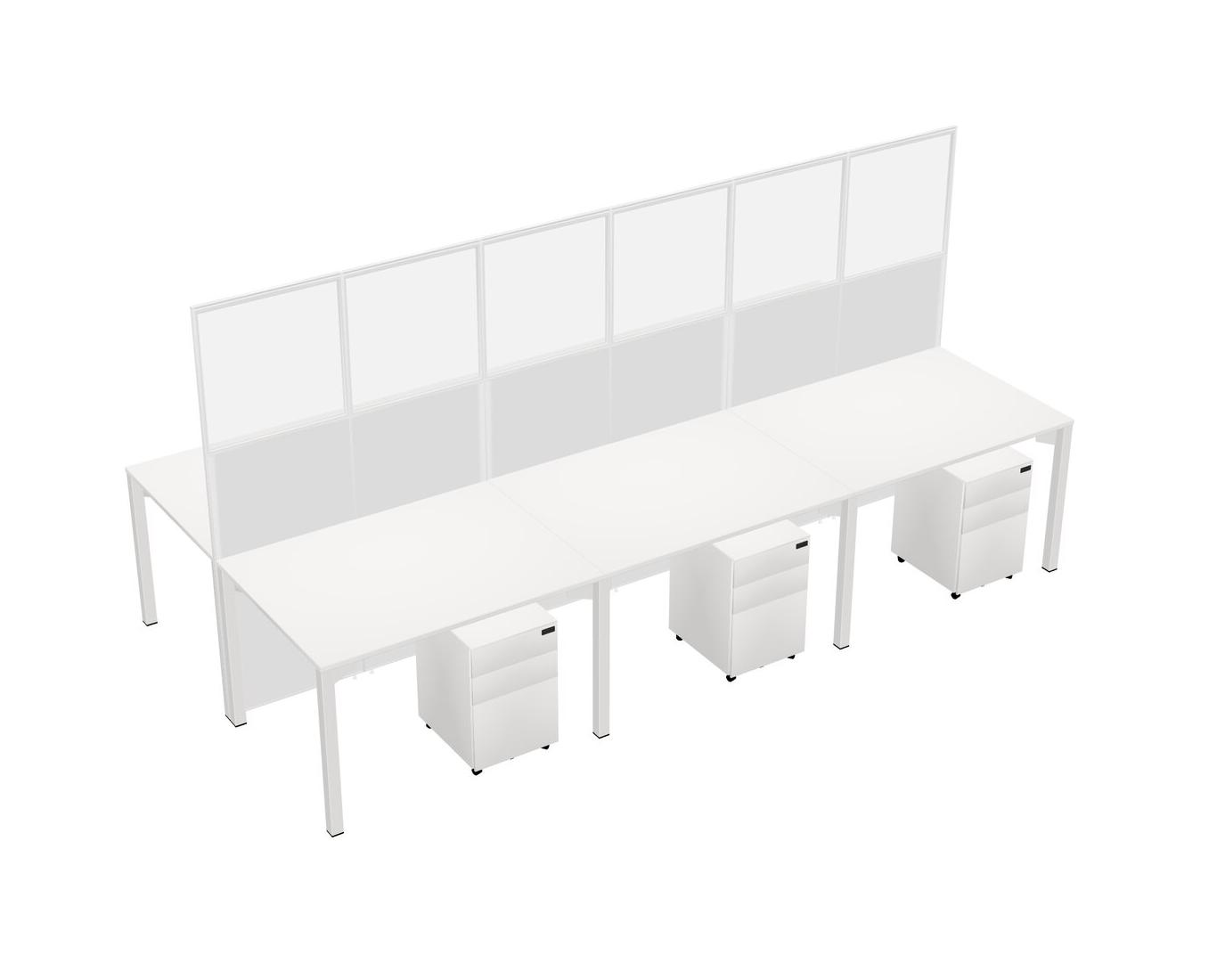 White Shared Rectangular Office Cubicle Panel System With Mobile Drawers For 6 Persons