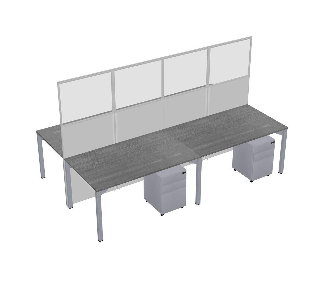 Grey Shared Rectangular Office Cubicle Panel System With Mobile Drawers For 4 Persons