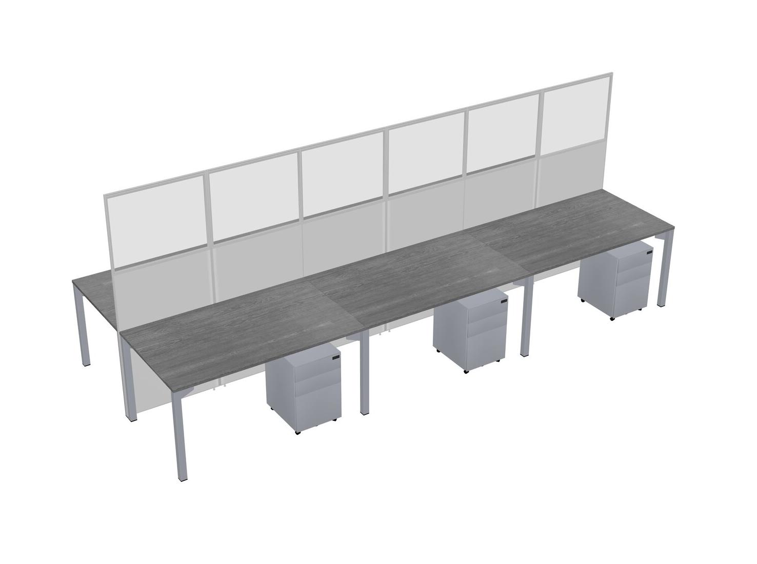 Grey Shared Rectangular Office Cubicle Panel System With Mobile Drawers For 6 Persons