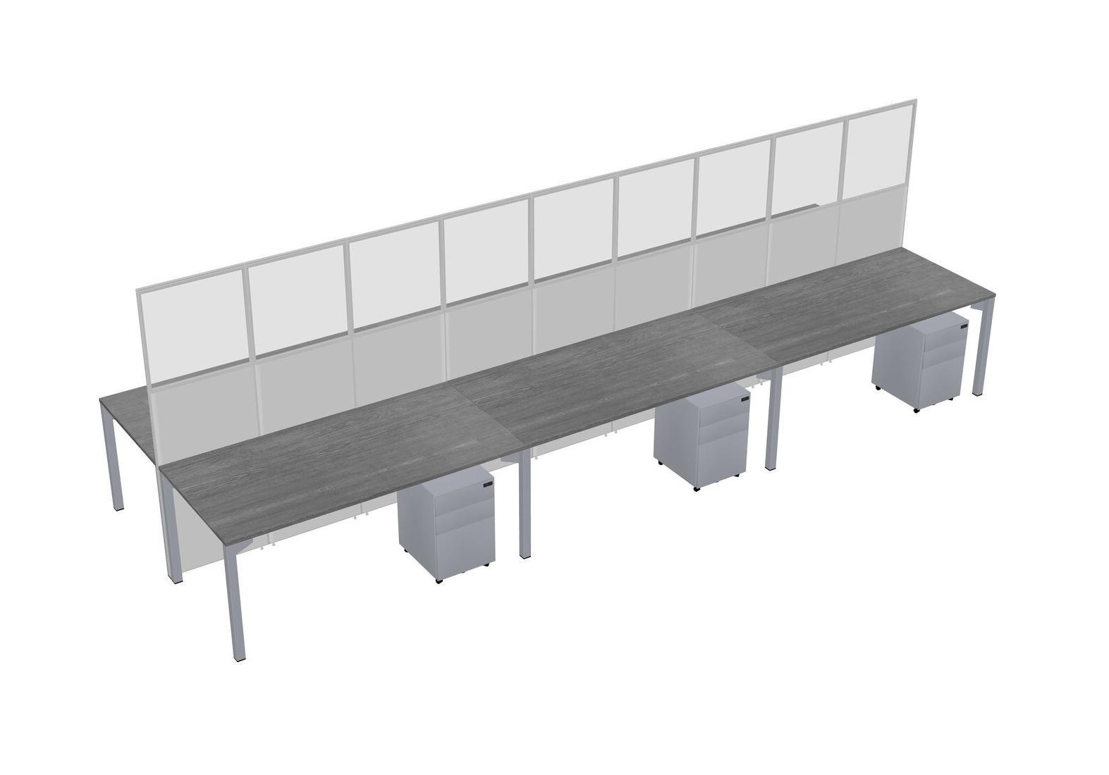 Grey Shared Rectangular Office Cubicle Panel System With Mobile Drawers For 6 Persons