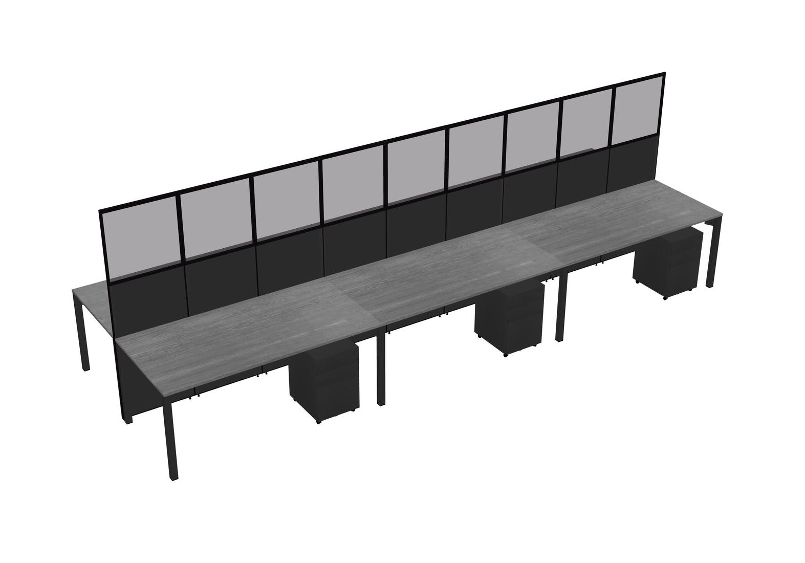 Grey Shared Rectangular Office Cubicle Panel System With Mobile Drawers For 6 Persons
