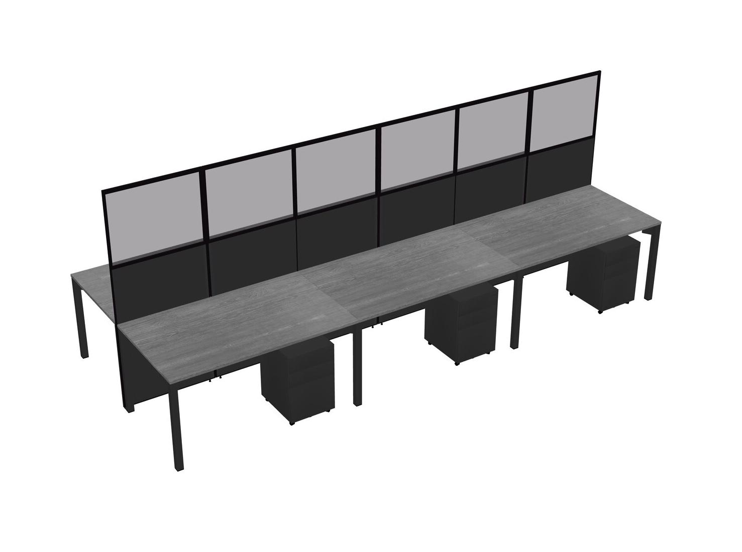 Grey Shared Rectangular Office Cubicle Panel System With Mobile Drawers For 6 Persons