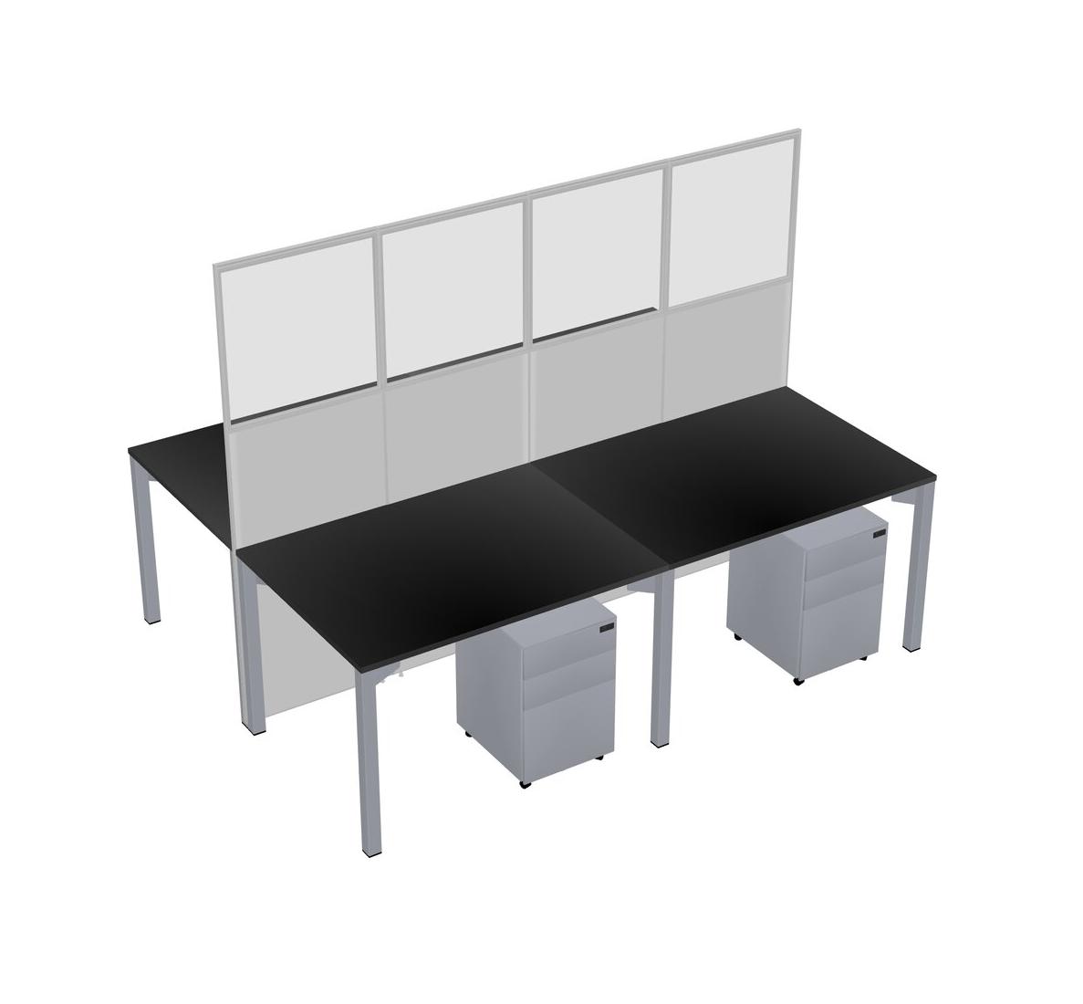 Black Shared Rectangular Office Cubicle Panel System With Mobile Drawers For 4 Persons