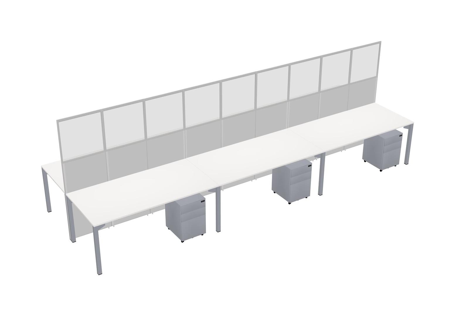 White Shared Rectangular Office Cubicle Panel System With Mobile Drawers For 6 Persons