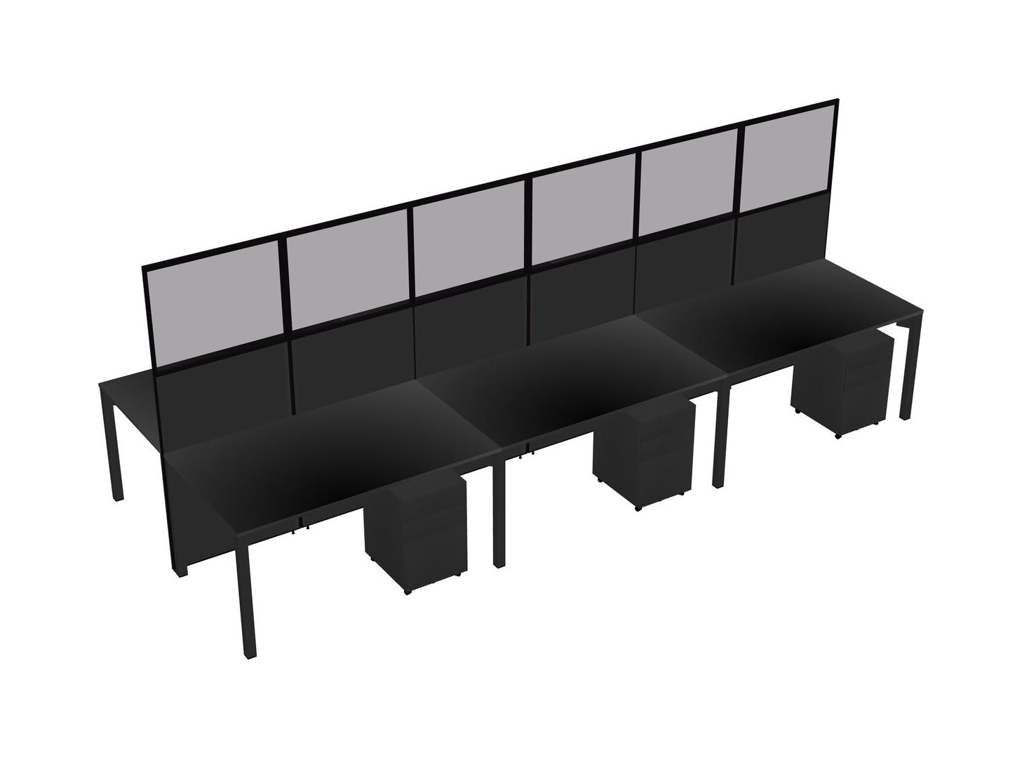 Black Shared Rectangular Office Cubicle Panel System With Mobile Drawers For 6 Persons
