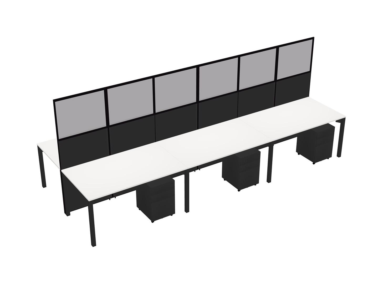 White Shared Rectangular Office Cubicle Panel System With Mobile Drawers For 6 Persons