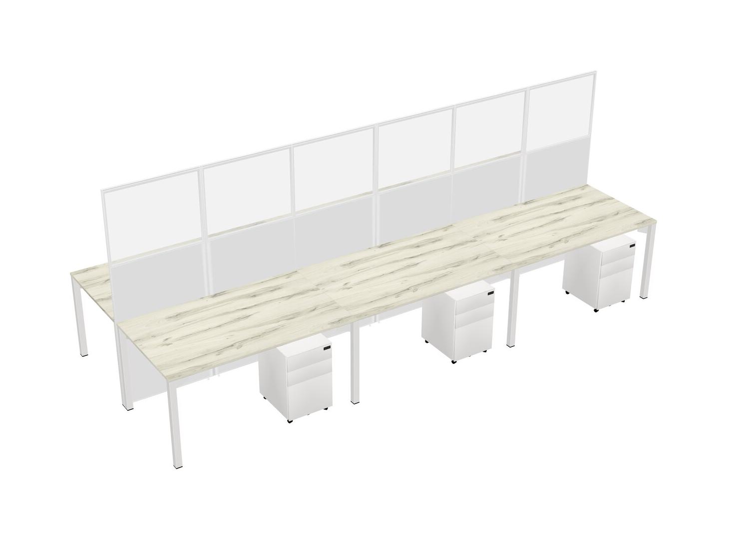Heinne Holz Shared Rectangular Office Cubicle Panel System With Mobile Drawers For 6 Persons