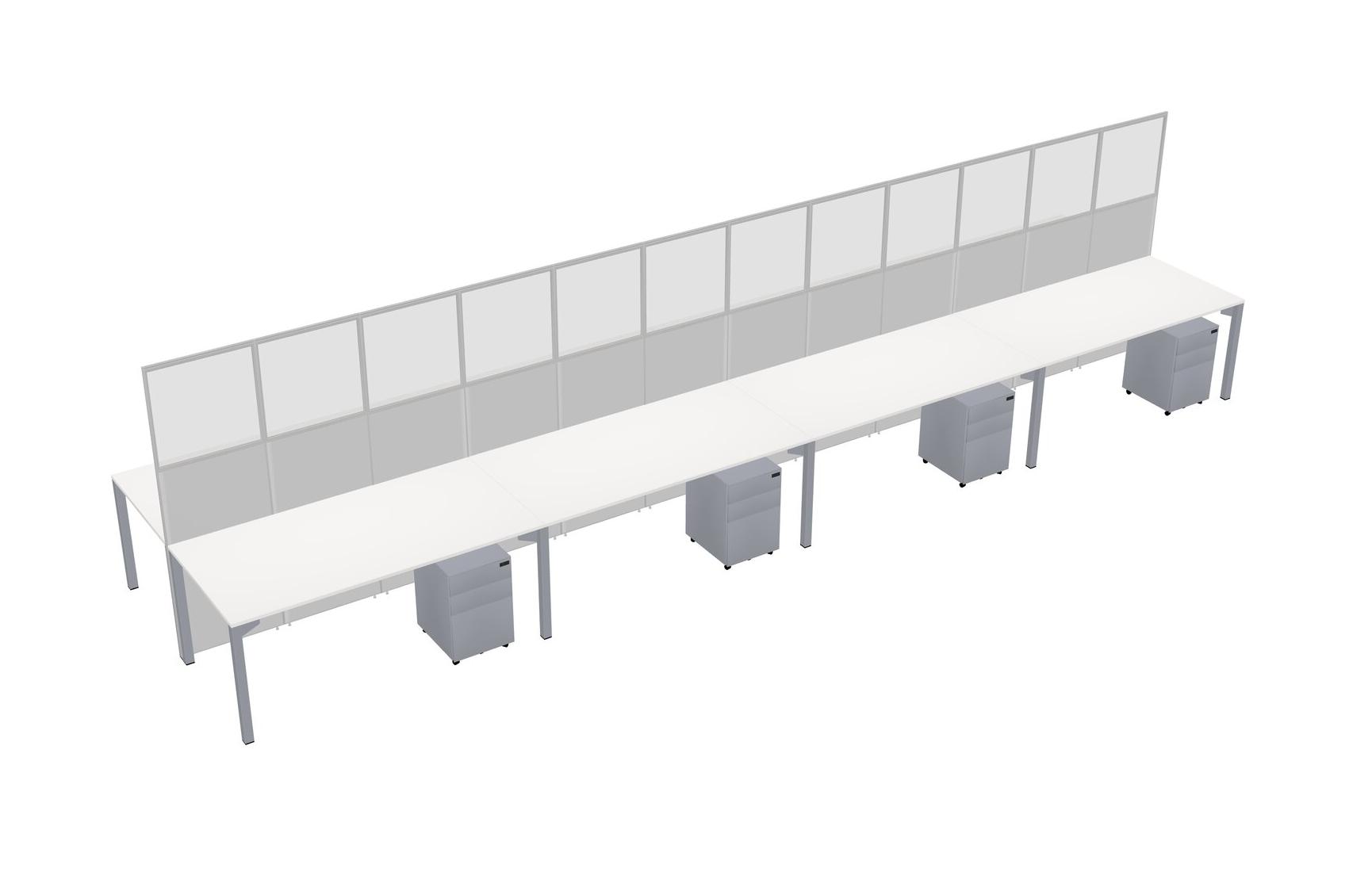 White Shared Rectangular Office Cubicle Panel System With Mobile Drawers For 8 Persons