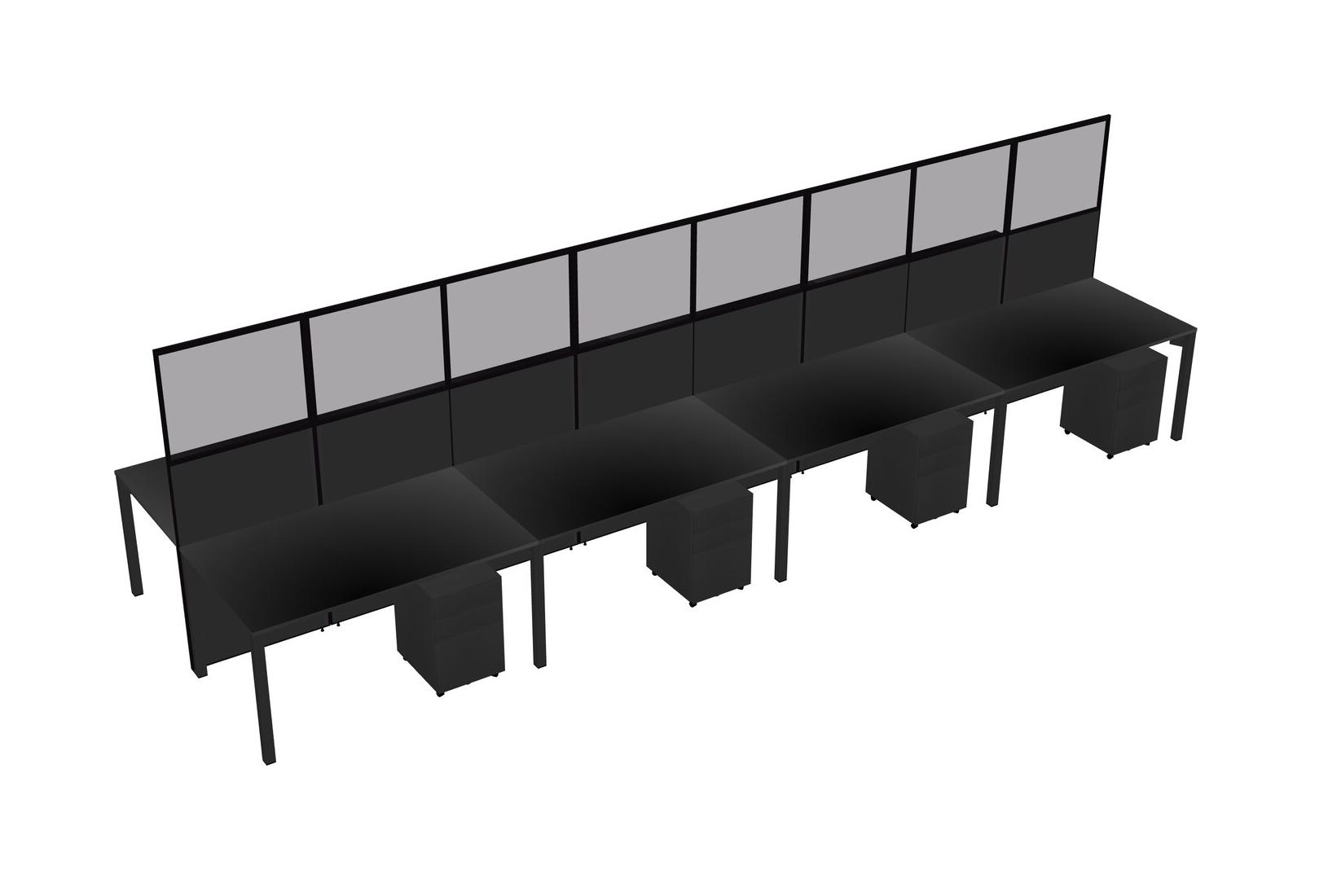 Black Shared Rectangular Office Cubicle Panel System With Mobile Drawers For 8 Persons