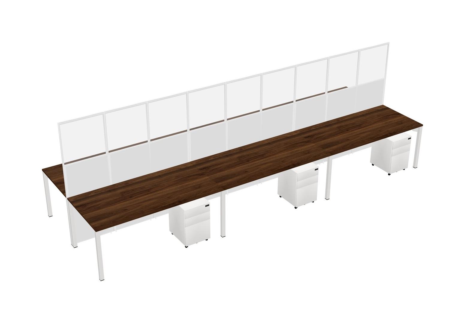 Columbia Walnut Shared Rectangular Office Cubicle Panel System With Mobile Drawers For 6 Persons