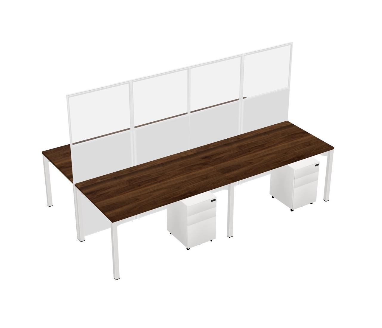 Columbia Walnut Shared Rectangular Office Cubicle Panel System With Mobile Drawers For 4 Persons