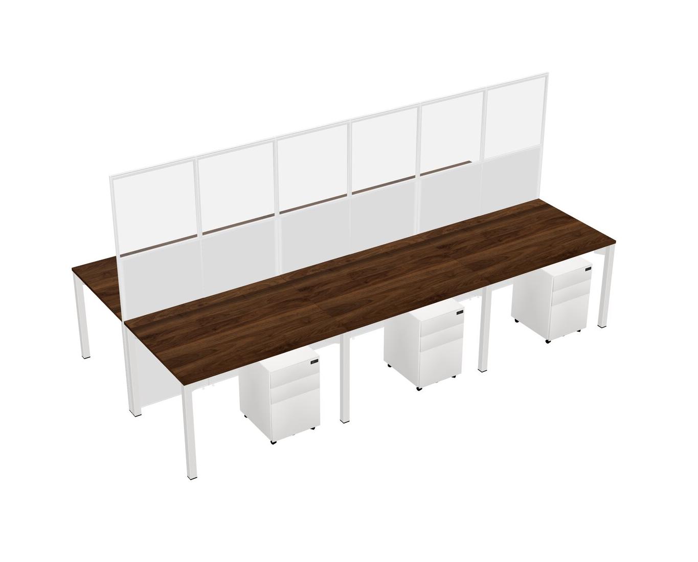 Columbia Walnut Shared Rectangular Office Cubicle Panel System With Mobile Drawers For 6 Persons