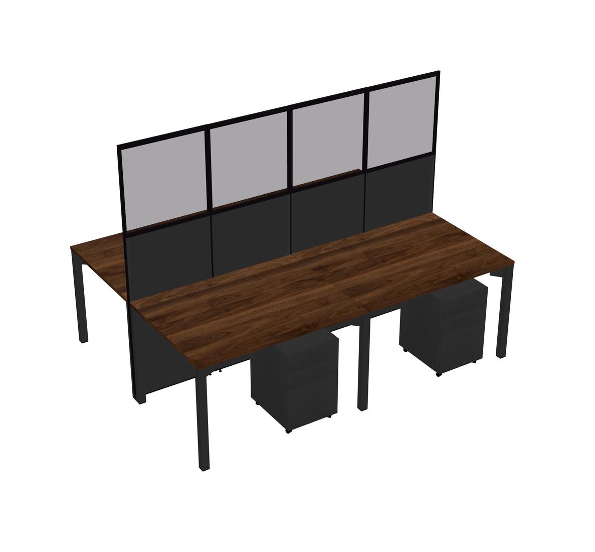 Columbia Walnut Shared Rectangular Office Cubicle Panel System With Mobile Drawers For 4 Persons