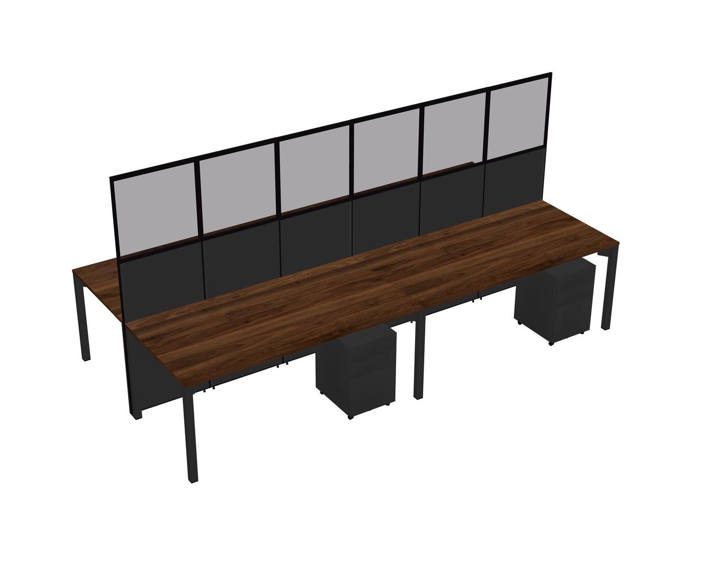 Columbia Walnut Shared Rectangular Office Cubicle Panel System With Mobile Drawers For 4 Persons