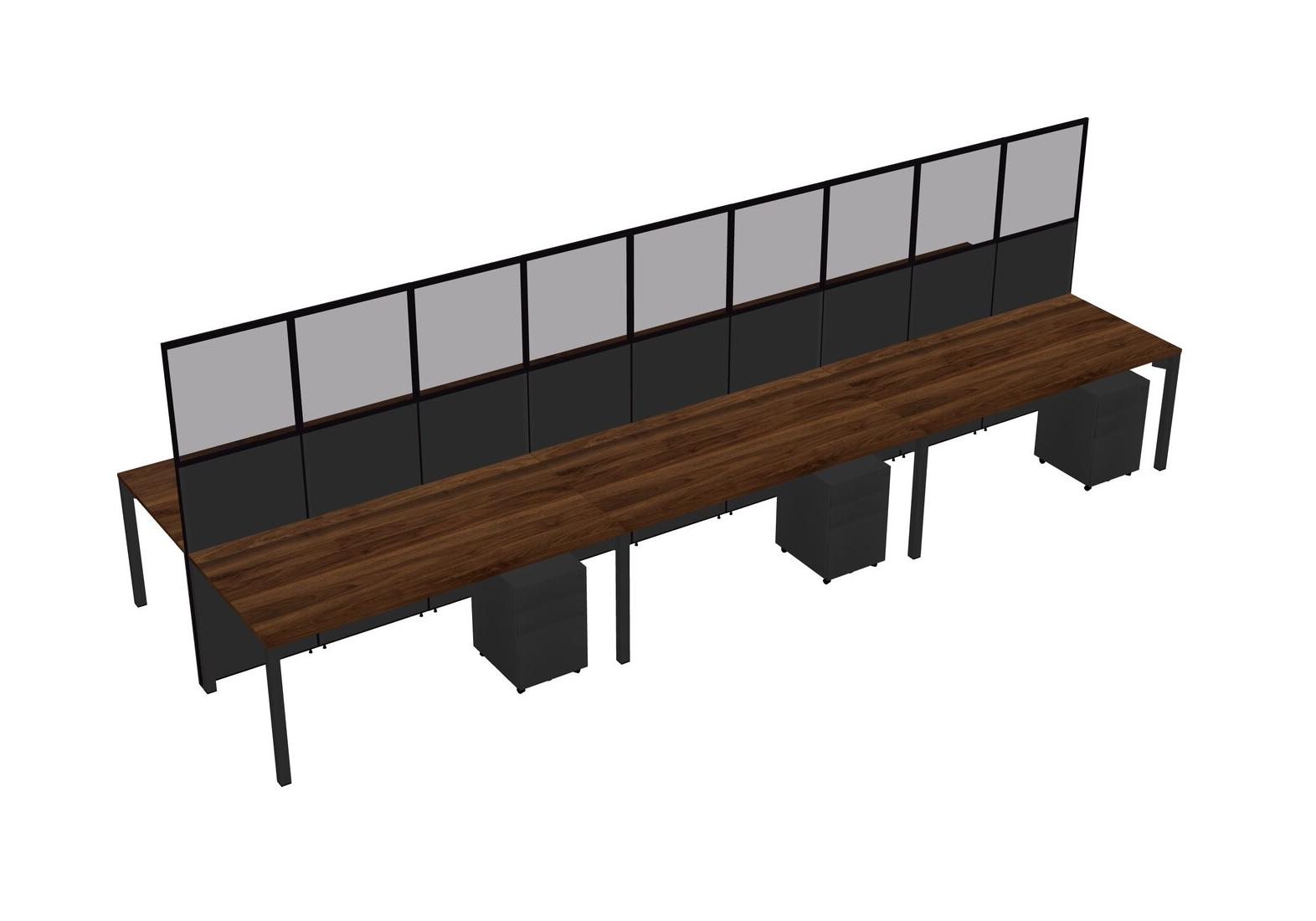 Columbia Walnut Shared Rectangular Office Cubicle Panel System With Mobile Drawers For 6 Persons