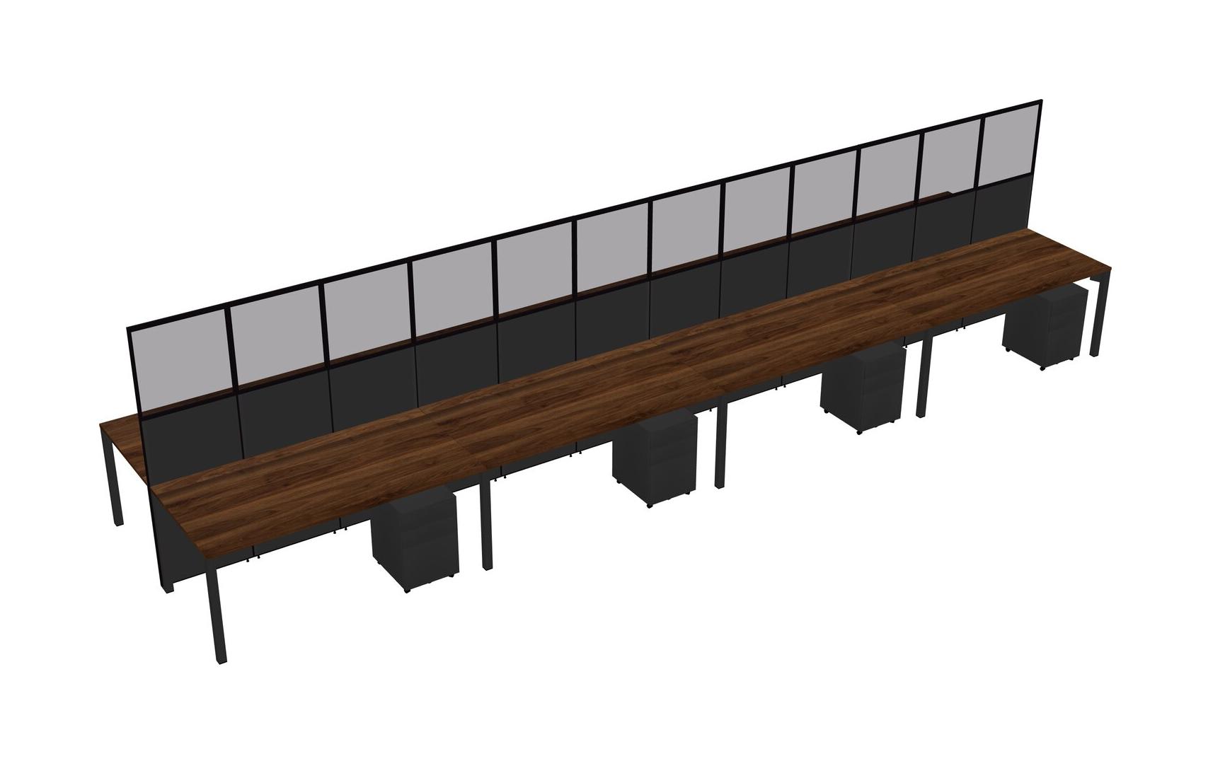Columbia Walnut Shared Rectangular Office Cubicle Panel System With Mobile Drawers For 8 Persons