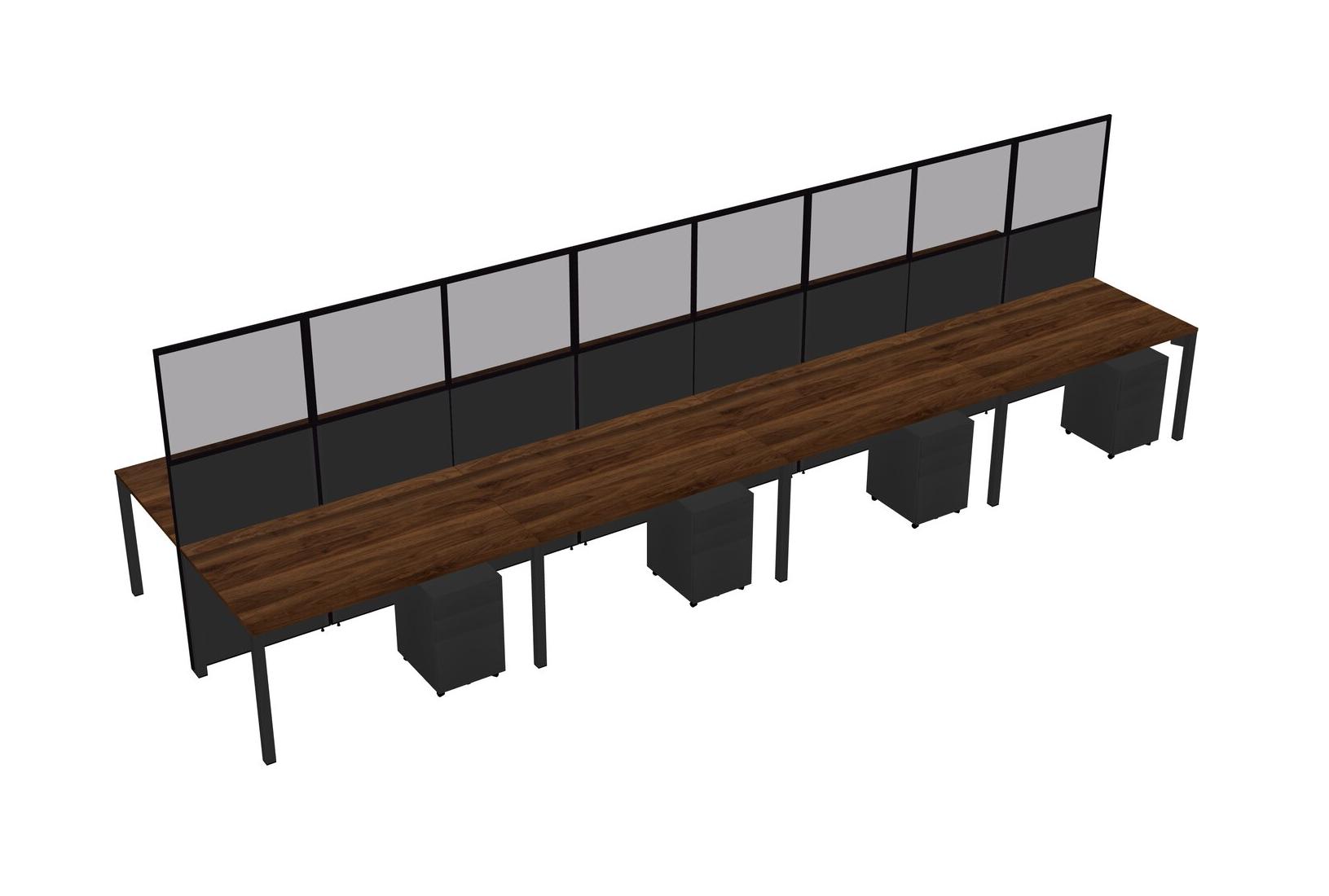 Columbia Walnut Shared Rectangular Office Cubicle Panel System With Mobile Drawers For 8 Persons