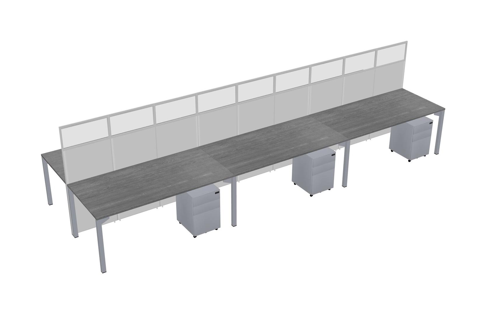 Grey Shared Rectangular Office Cubicle Panel System With Mobile Drawers For 6 Persons