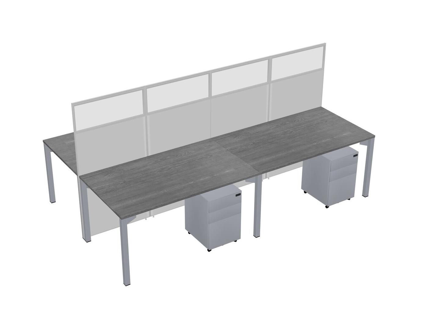 Grey Shared Rectangular Office Cubicle Panel System With Mobile Drawers For 4 Persons