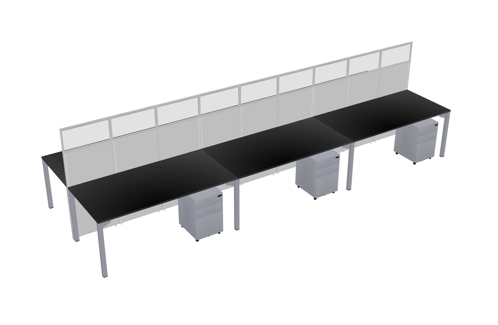 Black Shared Rectangular Office Cubicle Panel System With Mobile Drawers For 6 Persons