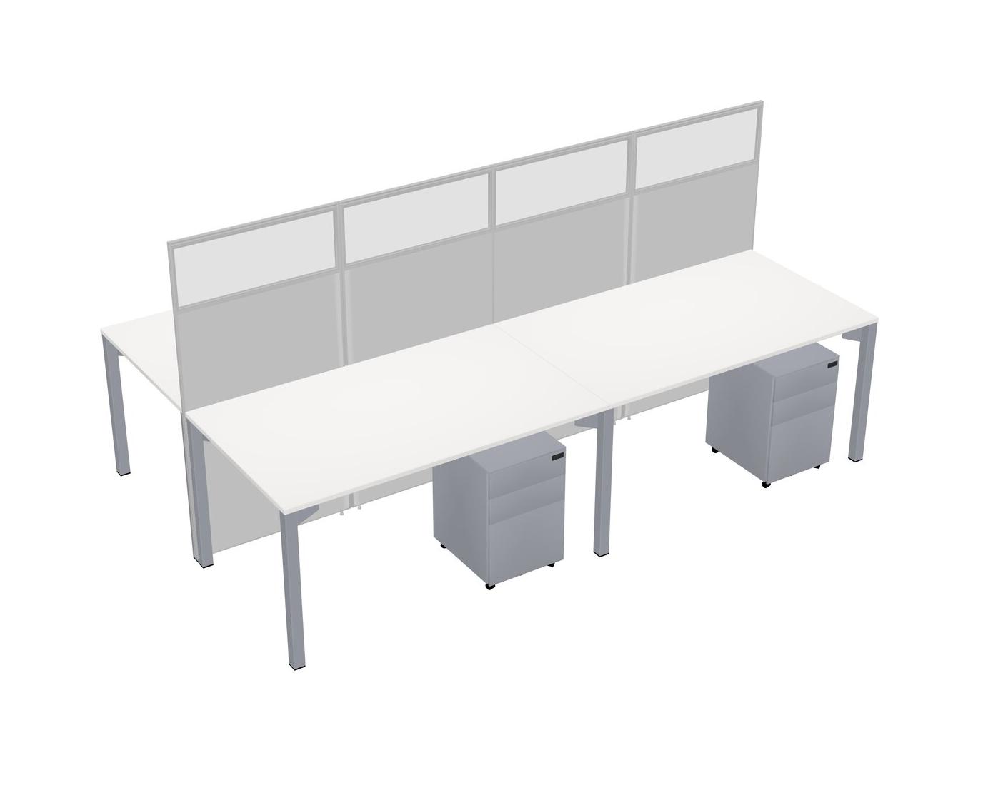White Shared Rectangular Office Cubicle Panel System With Mobile Drawers For 4 Persons