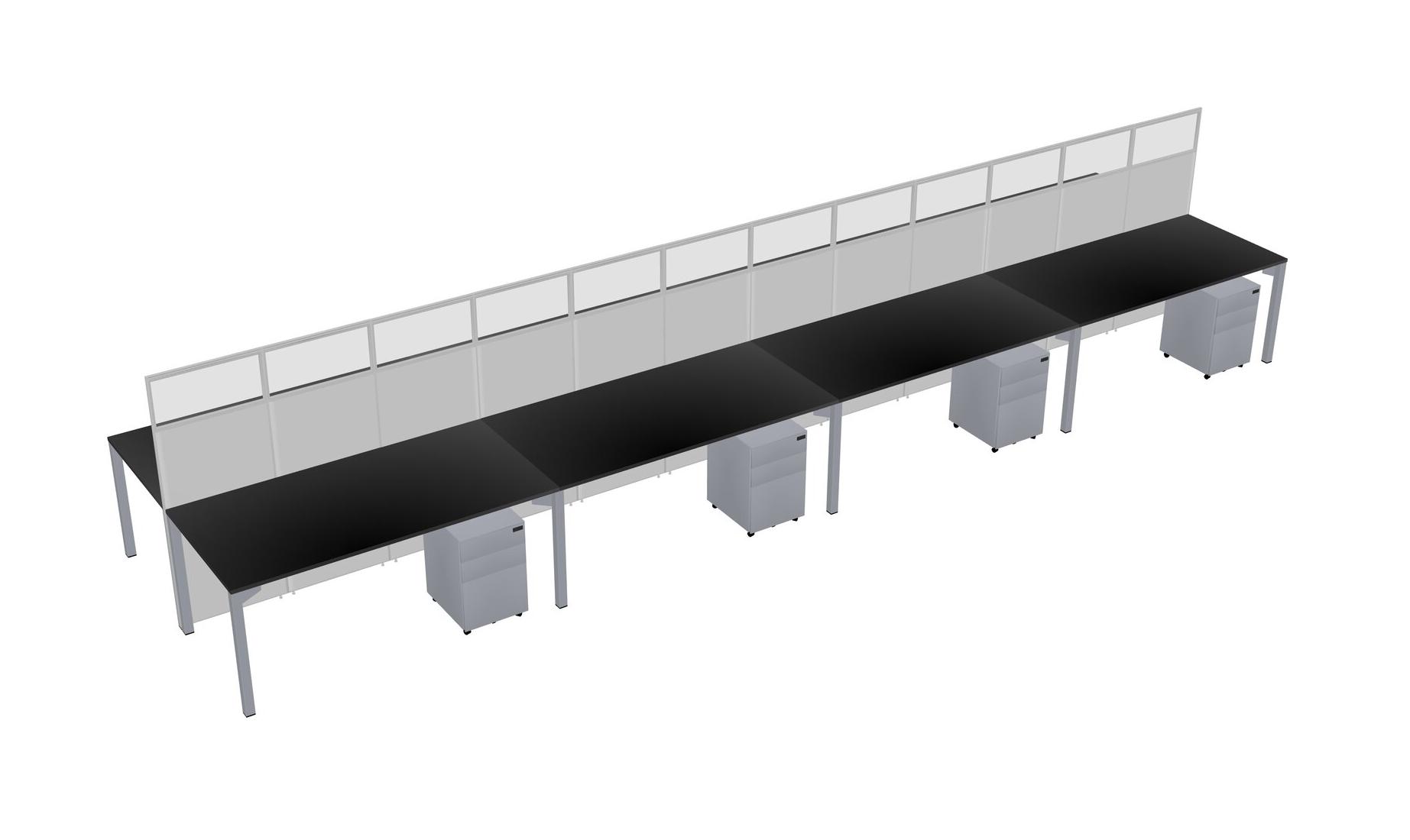 Black Shared Rectangular Office Cubicle Panel System With Mobile Drawers For 8 Persons