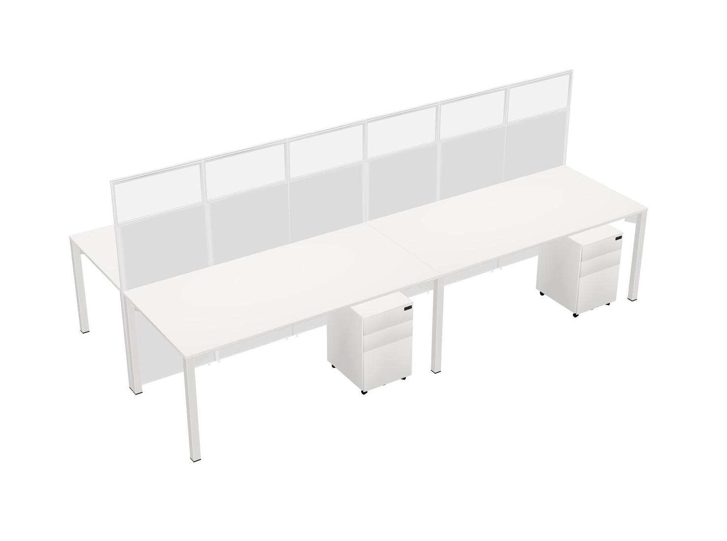 White Shared Rectangular Office Cubicle Panel System With Mobile Drawers For 4 Persons