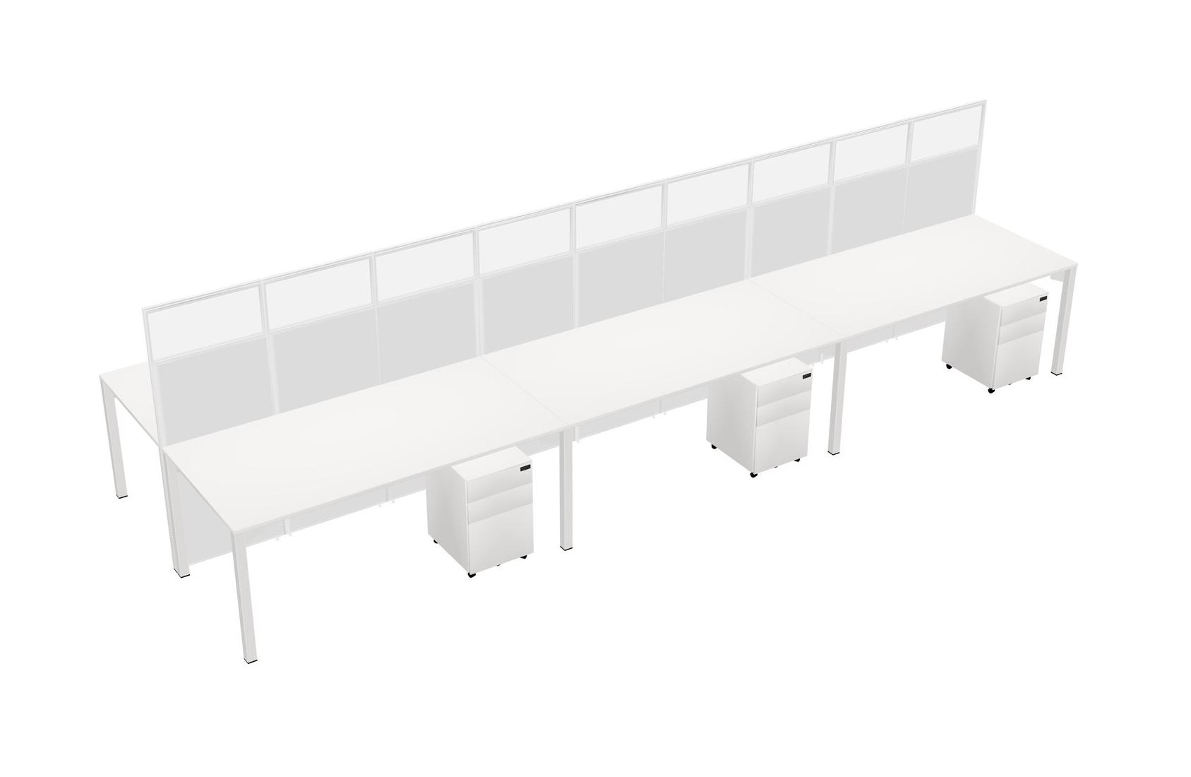 White Shared Rectangular Office Cubicle Panel System With Mobile Drawers For 6 Persons