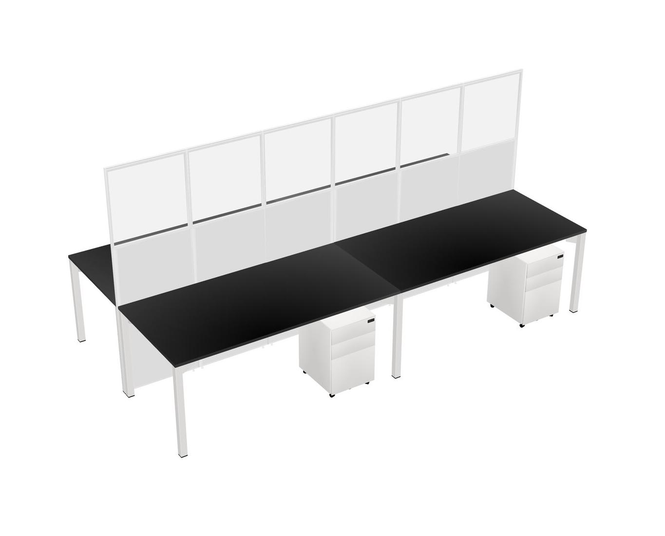 Black Shared Rectangular Office Cubicle Panel System With Mobile Drawers For 4 Persons