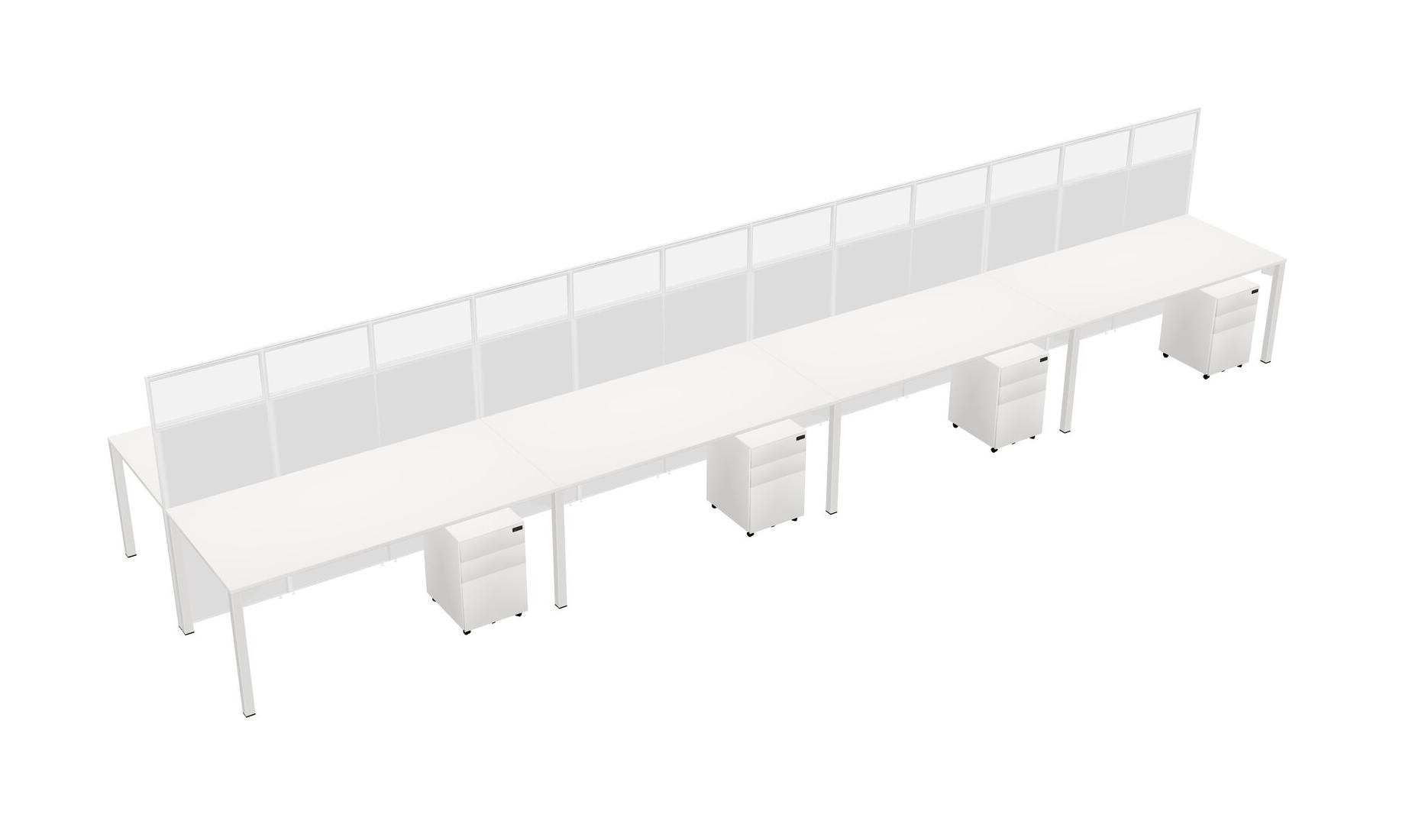 White Shared Rectangular Office Cubicle Panel System With Mobile Drawers For 8 Persons