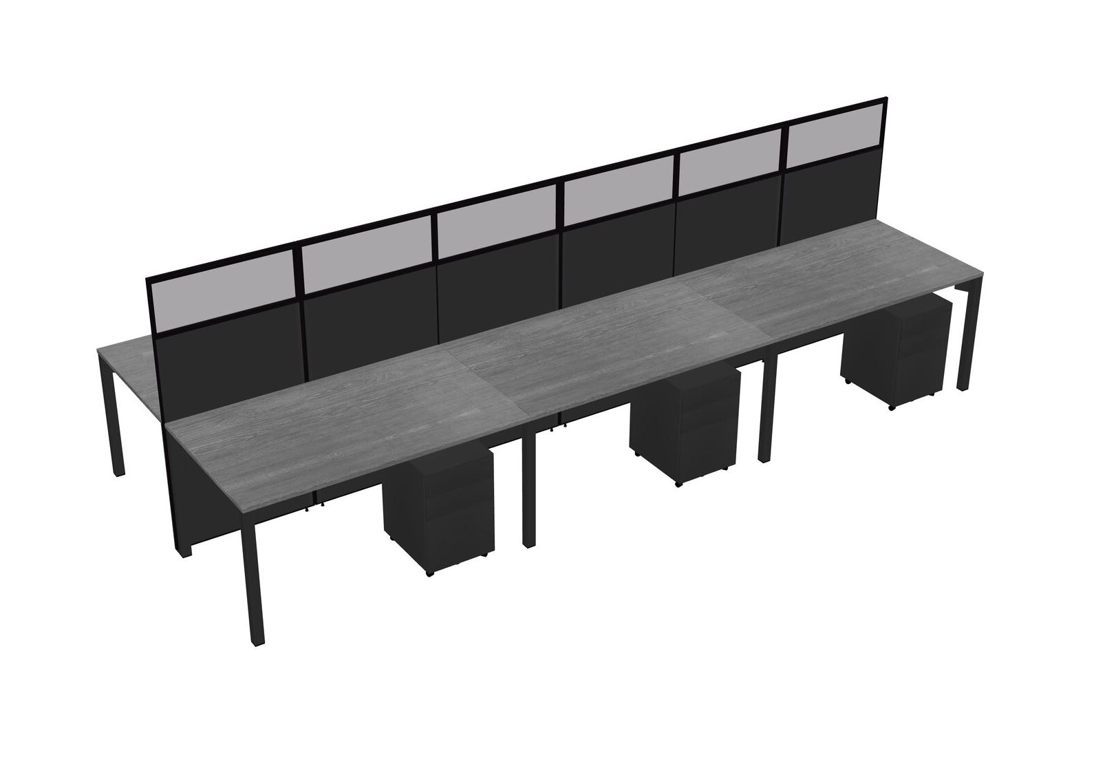 Grey Shared Rectangular Office Cubicle Panel System With Mobile Drawers For 6 Persons