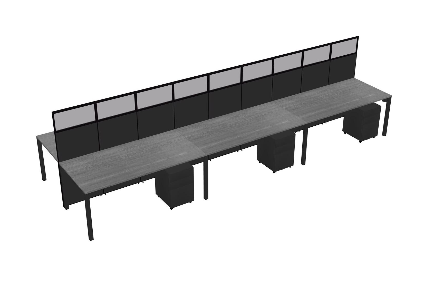 Grey Shared Rectangular Office Cubicle Panel System With Mobile Drawers For 6 Persons