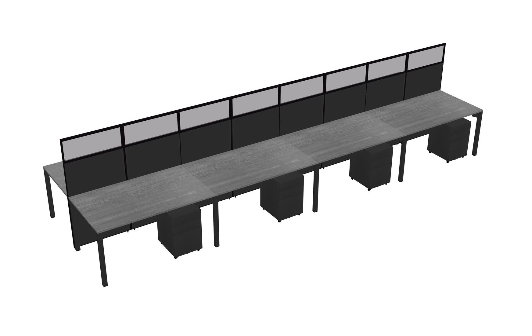 Grey Shared Rectangular Office Cubicle Panel System With Mobile Drawers For 8 Persons
