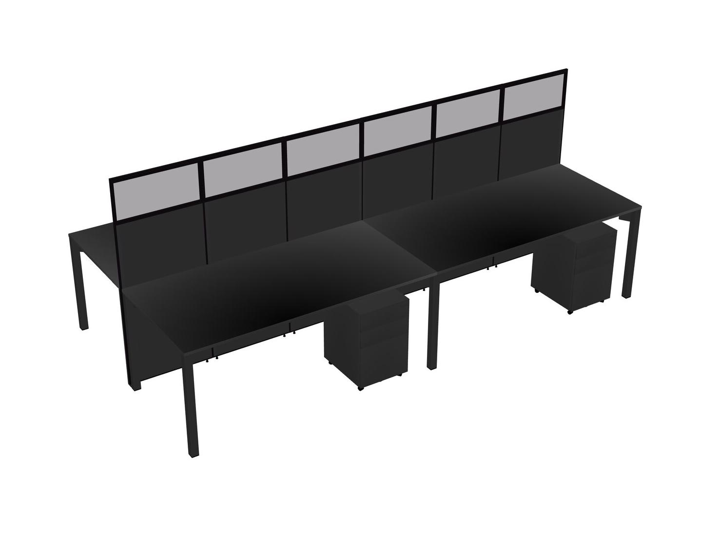 Black Shared Rectangular Office Cubicle Panel System With Mobile Drawers For 4 Persons