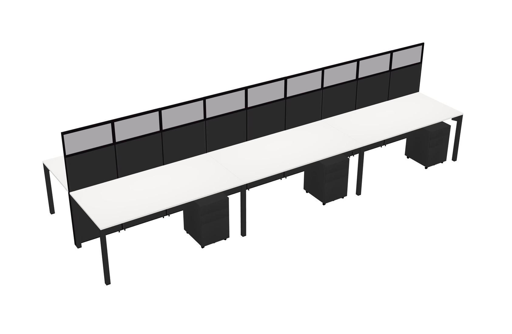 White Shared Rectangular Office Cubicle Panel System With Mobile Drawers For 6 Persons