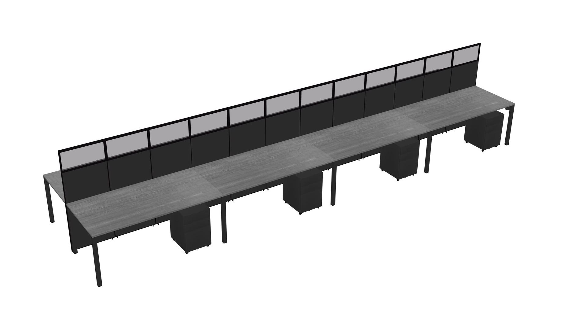 Grey Shared Rectangular Office Cubicle Panel System With Mobile Drawers For 8 Persons