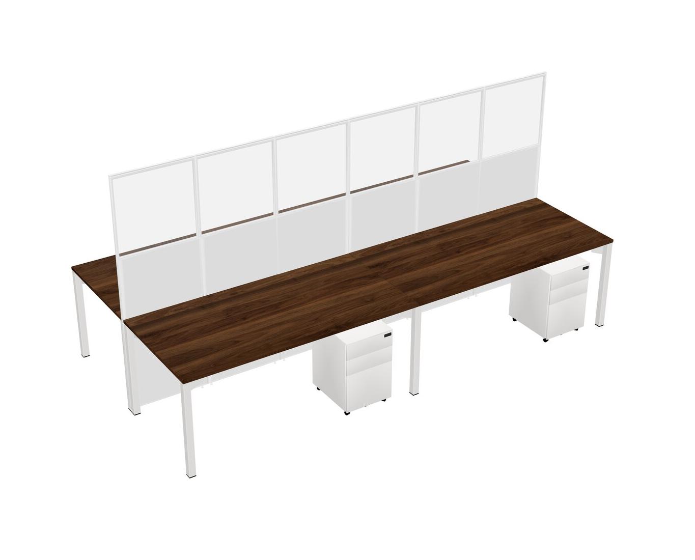 Columbia Walnut Shared Rectangular Office Cubicle Panel System With Mobile Drawers For 4 Persons