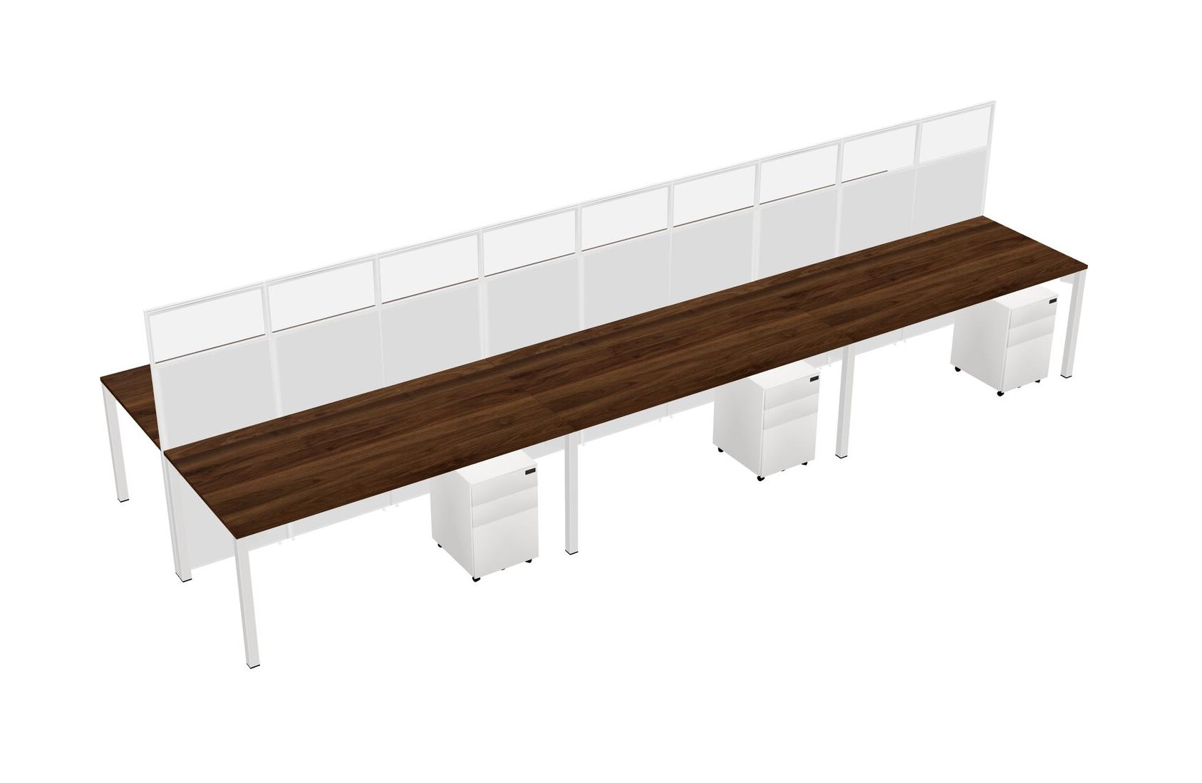 Columbia Walnut Shared Rectangular Office Cubicle Panel System With Mobile Drawers For 6 Persons