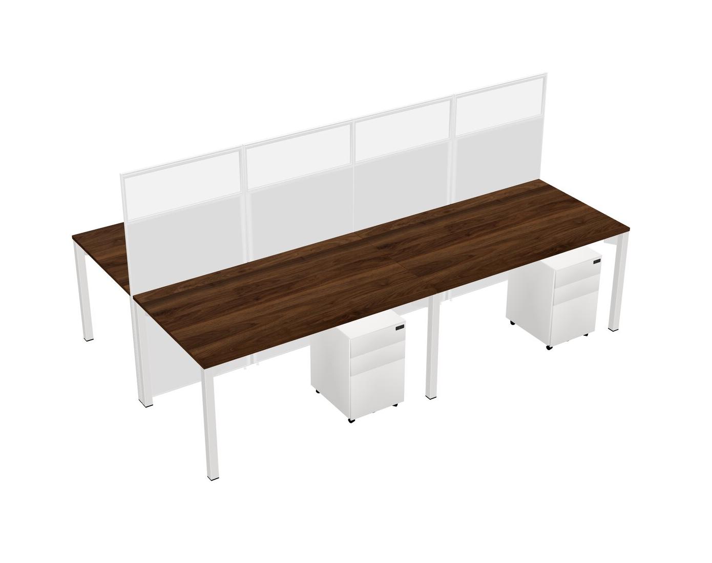 Columbia Walnut Shared Rectangular Office Cubicle Panel System With Mobile Drawers For 4 Persons