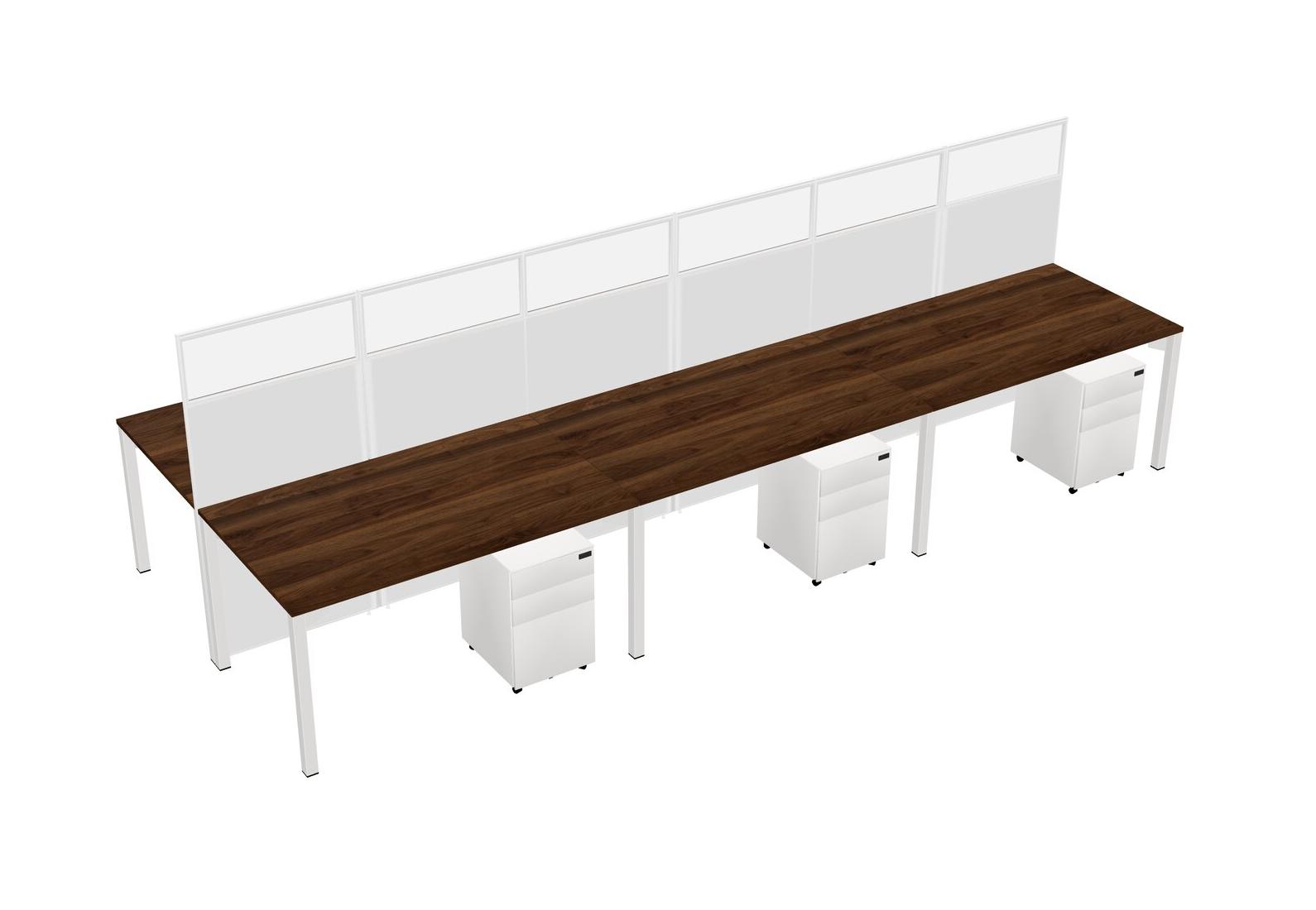Columbia Walnut Shared Rectangular Office Cubicle Panel System With Mobile Drawers For 6 Persons